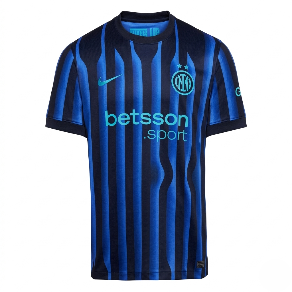 تيشيرت Inter Milan الأساسي لموسم 2025/2026 بالتصميم الكلاسيكي باللونين الأزرق والأسود، رمز القوة والتاريخ العريق للنيراتزوري. تصميم عصري يحافظ على هوية النادي مع لمسات حديثة جذابة.